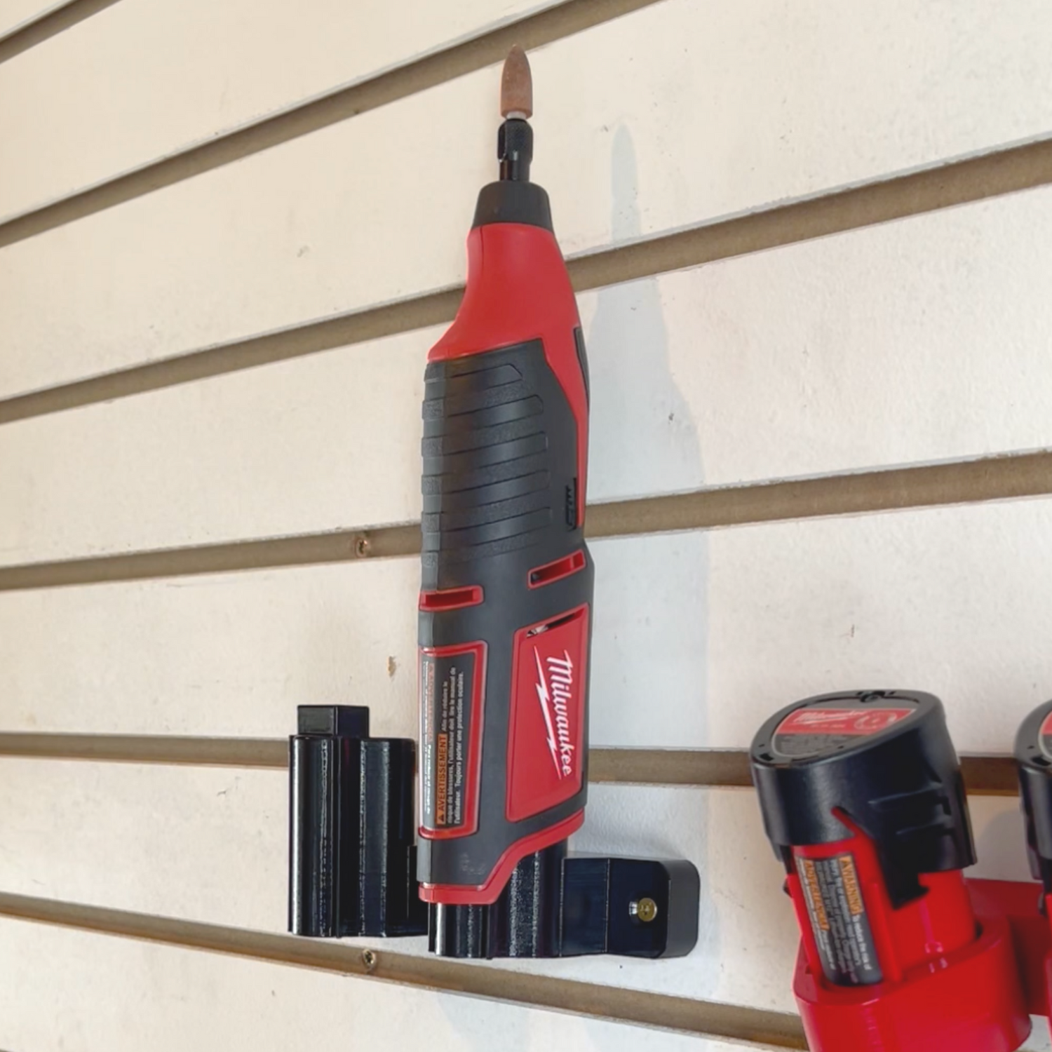 Vast tool mounts help prevent cluttered garages by providing full range of tool mounting solutions. Perfect for hanging your Milwaukee M12 tools in your garage, showroom etc.