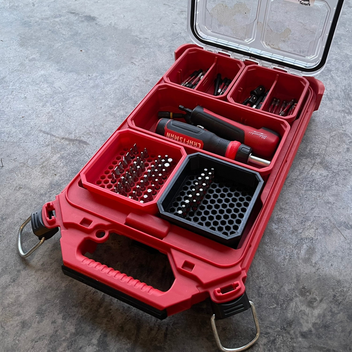 Tight & Secure fitment; Designed to hold 1/4" hex bits snug in your PACKOUT