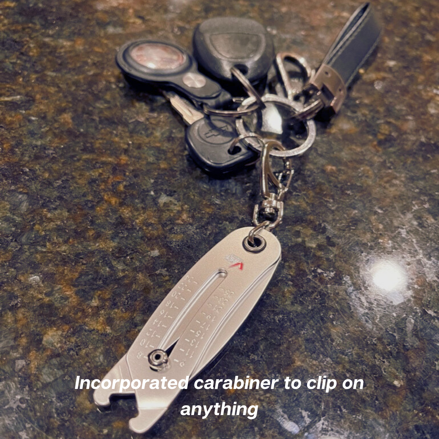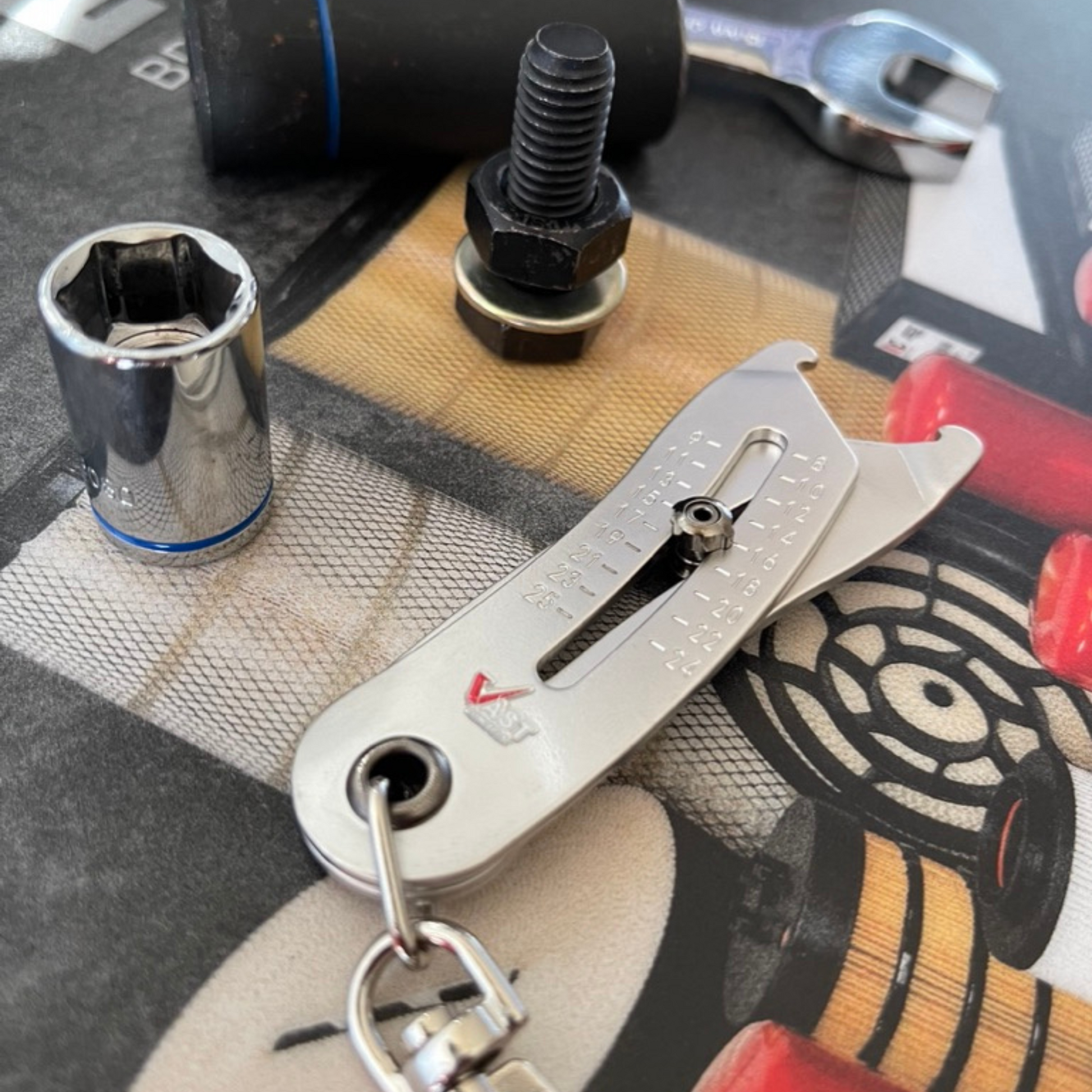 with our Bolt Head Gauge Sizer Keychain