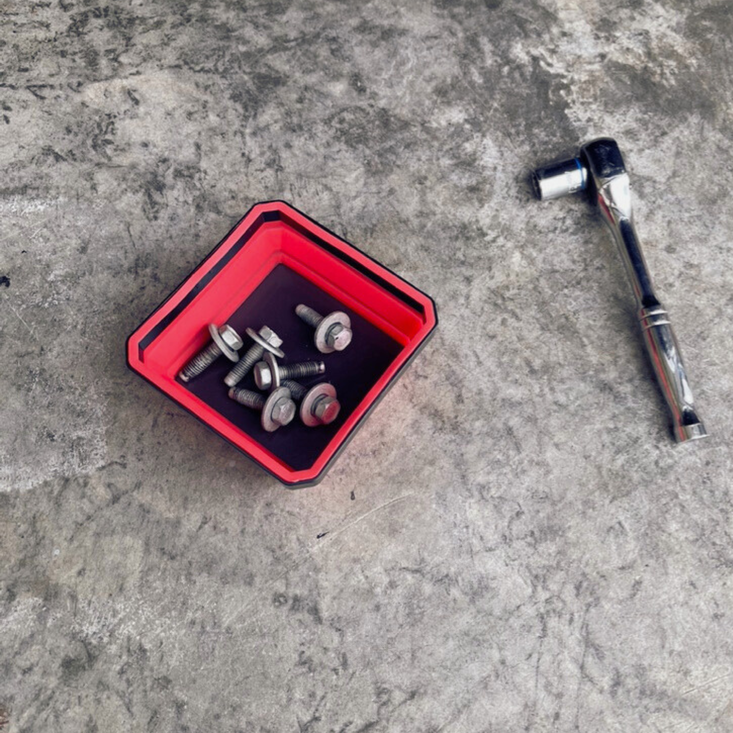with our Expandable Silicone Magnetic Parts Storage Bin | Collapsable Magnetic Parts Bin - Red