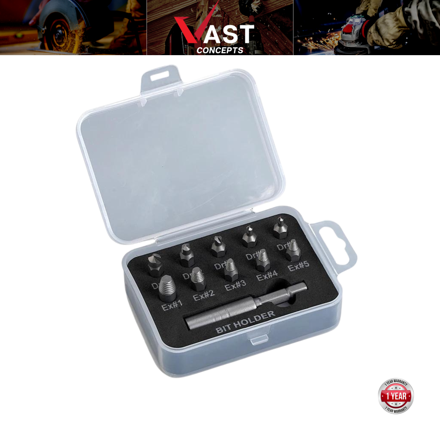 Vast Concepts strives to design and manufacture high quality Tool Accessories & Storage Solutions for every DIYer and professional to organize and optimize workflow. Our Stripped Screw Extractor Kit is crafted with High Carbon Steel to ensure durability even with pneumatic drivers. Simply choose the appropriate bit size and insert into the stripped screw for an instantaneous fix!