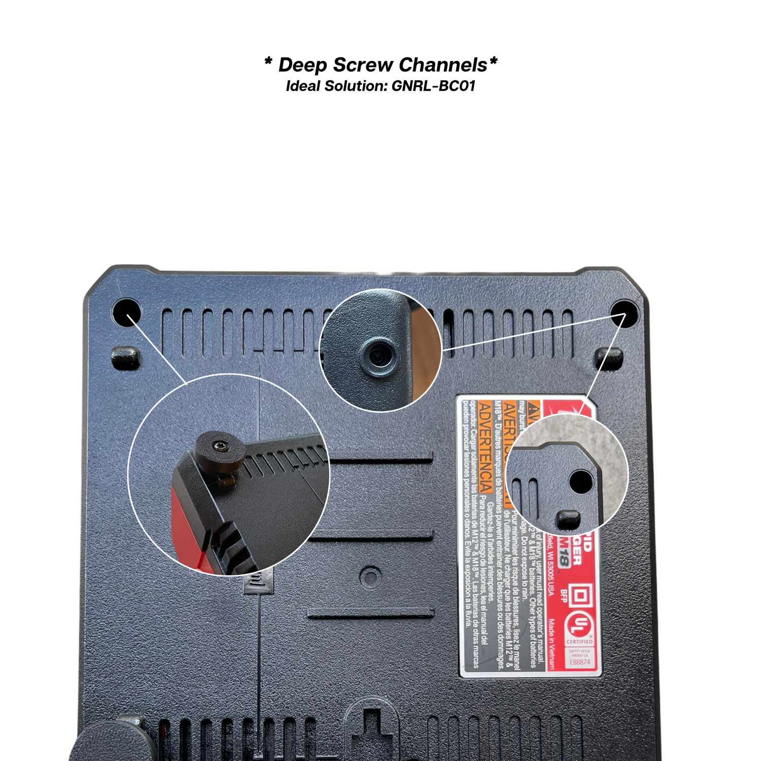 with our Universal Detachable Battery Charger Mount Kit - Deep Screw Chamber