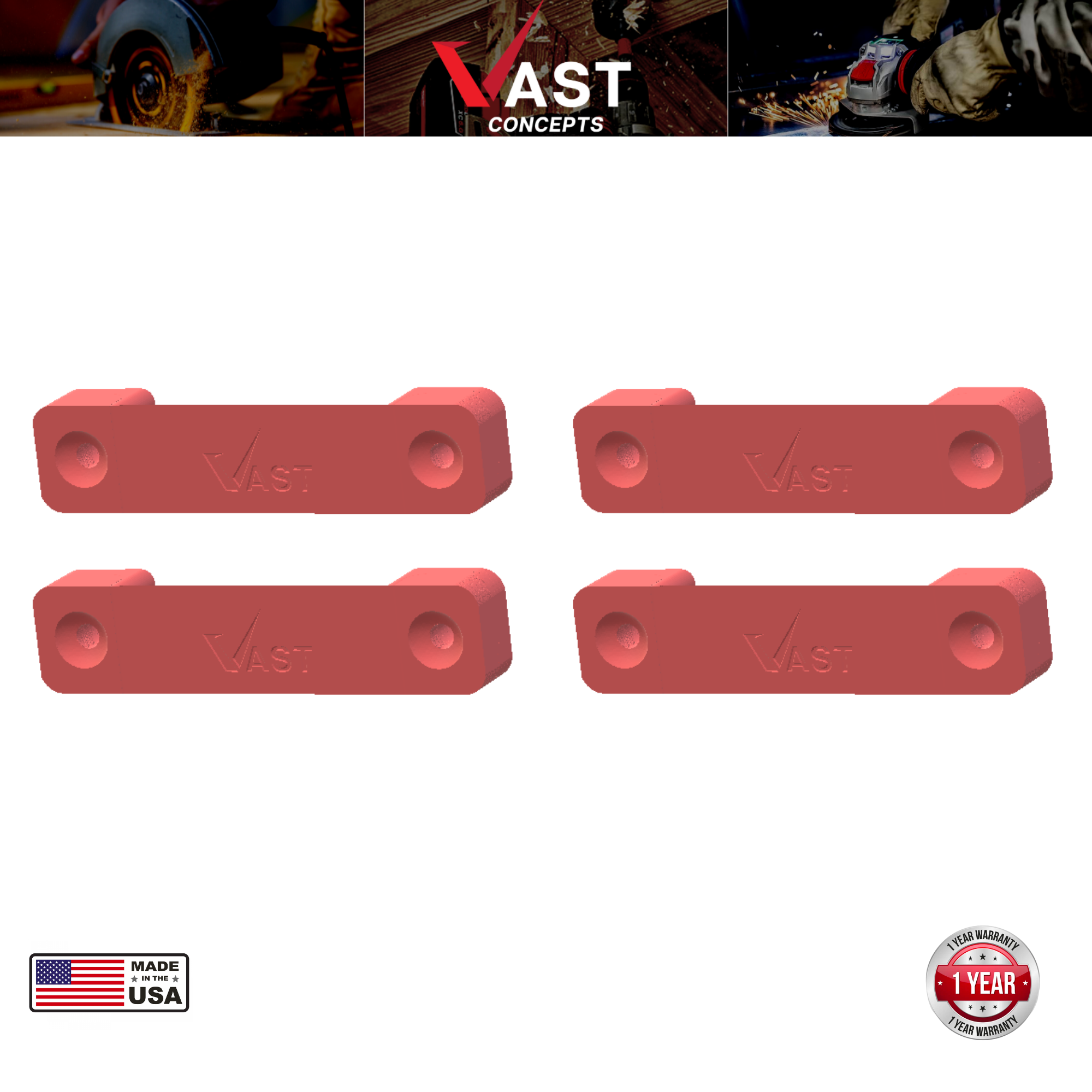 Vast tool mounts help prevent cluttered garages by providing full range of tool mounting solutions. Perfect for hanging any and all of your utility tools, drills, tape measures in your garage, showroom, vehicle etc.